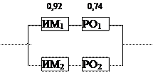 Тогда вероятность безотказной работы двух ветвей Р1(t)=1-(1-0,92*0,74)2.