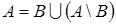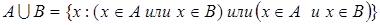Объединением двух множеств A и B (или теоретико-множественной суммой) называется множество, состоящее из всех элементов, являющихся элементами хотя бы одного из множеств A или B. Таким образом,