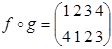 4) Пусть A ={1, 2, 3, 4} и f и g – две подстановки множества A. Запишем каждую подстановку в виде двух строк, где в первой строке перечислим элементы множества A, а во второй – соответствующие им элементы f (ai) и g (ai):