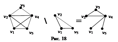 4) Относительное дополнение подграфа до графа – это граф, в который входят те ребра основного графа, которых не было в подграфе, а множество вершин совпадает с множеством вершин основного графа. См. рис.18.