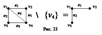 7) Удаление вершины – вершина удаляется из графа вместе со всеми инцидентными ей ребрами. См. рис.21.