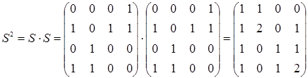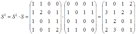 Пример: по заданной матрице смежности определить число маршрутов длины 3 между любой парой вершин в графе.