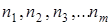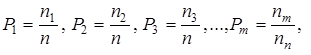 – числа элементов с признаками 1, 2, 3… m в последовательности длиной n.