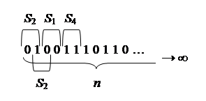 Пусть двоичный эргодический источник характеризуется величиной r =2. Тогда возможное число состояний источника N = 22 = 4, а сами состояния Sk - это двоичные комбинации.