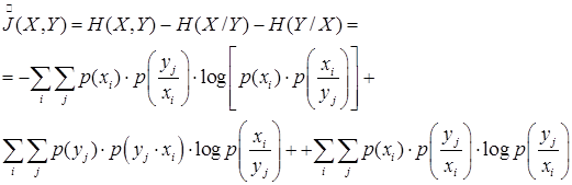 Условная энтропия H (X/Y) – мера остаточной неопределённости о переданном ансамбле сигналов Х, если известен ансамбль принятых сигналов. Аналогично можно записать