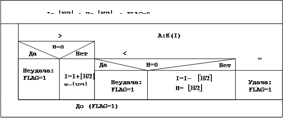 Структурограмма алгоритма однородного бинарного поиска приведена