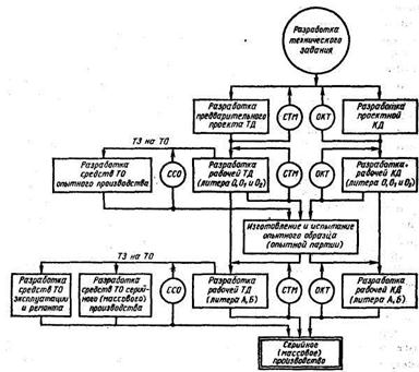 ОКТ— отработка конструкции изделия на технологичность; СТМ—совершенствование технологических методов изготовления, эксплуатация и ремонта; ССО — совершенствование средств технологического оснащения (ТО);ЛД— конструкторская документация; ТД — технологическая документация.