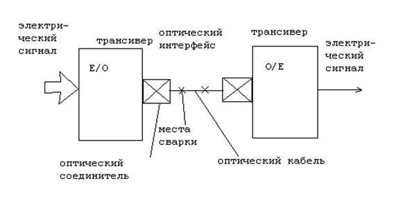Структурная схема волоконно-оптической линии связи приведена на рис.4.2.