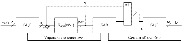Данный алгоритм декодирования легко реализуется на схемах с регистрами с обратной связью.