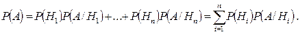 P (А) = P (Н 1) Р (А / Н 1) + Р (Н 2) Р (А / Н 2) +... + Р (Нn) Р (А / Нn) =