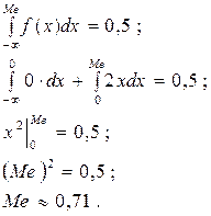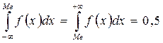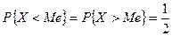 По определению медианы Р{X<Me}= P{X>Me}. Следовательно, медиану можно найти по уравнению (6.12)