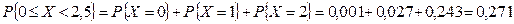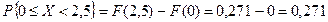 Вероятность попадания случайной величины в заданный интервал значений от х 1 = 0 до х 2 = 2,5 можно определить двумя способами: