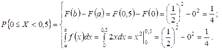 Искомую величину P{0<X< 0,5} определим двумя способами: