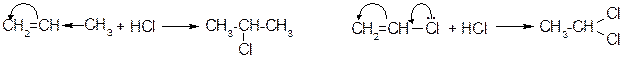 Для соединений, имеющих у двойной связи электроноакцепторный заместитель, реакция идет против правила Марковникова.