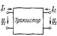 Биполярный транзистор удобно представить активным нелинейным четырехполюсником, изображенным на рис. у которого выходной ток I2 и входное напряжение U1 зависят от входного тока I1и выходного напряжения U2, в этом случае четырехполюсник описывается системой уравнений в H-параметрах.