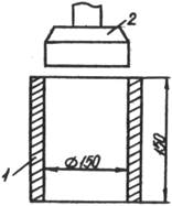 Предел прочности исходной горной породы вычисляют как среднее арифметическое результатов испытания пяти образцов, при этом указывают верхний и нижний пределы прочности. В ряде случаев исходная горная порода бывает ослаблена крупными порами или трещинами. Щебень, полученный дроблением горной породы, может быть достаточно прочным, особенно его фракции. Поэтому для более точного определения прочности породы необходимо дополнительное испытание дробленной щебня (гравия), применяемого в качестве заполнителя в бетоне. Действующие стандарты предусматривают косвенное определение прочности заполнителей посредством условных механических испытаний по дробимости в стальном цилиндре со съёмным дном г, плунжером (рис. 2.12.1).