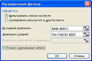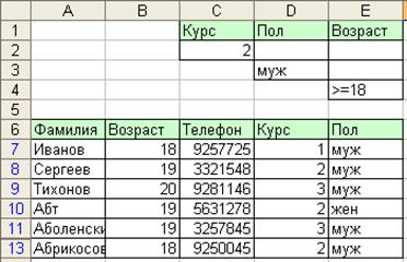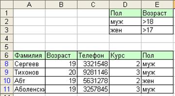диапазон критериев в этом случае оформляется в виде столбца, в котором в смежных ячейках записаны условия отбора.