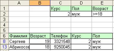 Диапазон критериев содержит ячейки, которые включают названия столбца (копию), для которого выполняется подведение итогов в списке и само условие, по которому определяется функция.