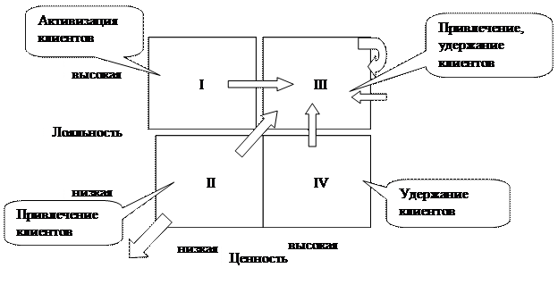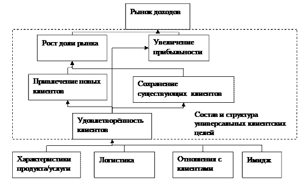 | Повышение удовлетворённости клиента | Увеличение продолжительности отношений с клиентом | 1.Время, необходимое для решения проблем клиента 2.оценка клиентом уровня обслуживания |