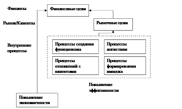 Вертикальная сбалансированность – наличие чётких, ярко выраженных причинно-следственных связей между целями/показателями разных перспектив.