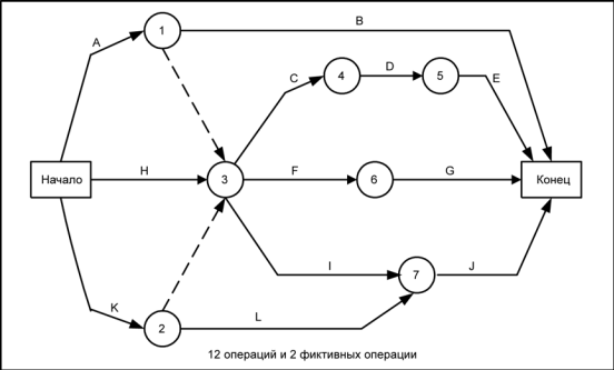 расписания проекта, в котором операции представляются в виде дуг, которые