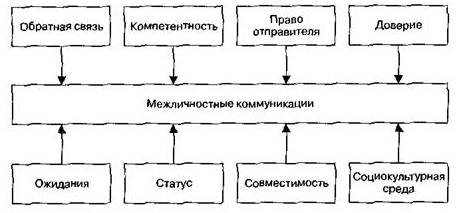 Межличностная коммуникация – коммуникация, осуществляемая между людьми в ситуациях «лицом к лицу» и в группах с помощью слов и несловесных средств общения. Именно она представляет наибольшую значимость для изучения организационного поведения. На межличностные коммуникации оказывают влияние различные факторы (Рисунок 5.2).