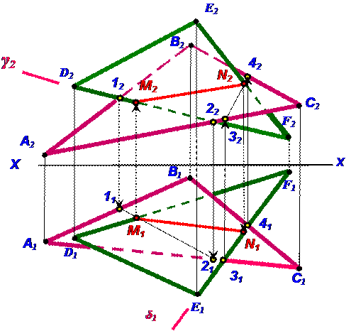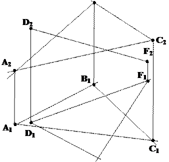 1. Линия D2F2 заключается в вспомогательную плоскость-посредник γ2,