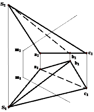 2. Σ2 пересекает фронтальную проекцию пирамиды по треугольнику 122232