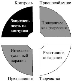 Усиление контроля - в зацикленных на контроле компаниях менеджеры при возникновении новых проблем не ищут новую информацию, а используют и усиливают прежние методы контроля. Например, на затухающем рынке руководители корпорации требуют более детального производственного и финансового учета и отчетности, тогда как на деле причиной упадка может быть то, что разбегаются неудовлетворенные клиенты, или продукция устарела, или на рынке объявились новые производители с новым продуктом.