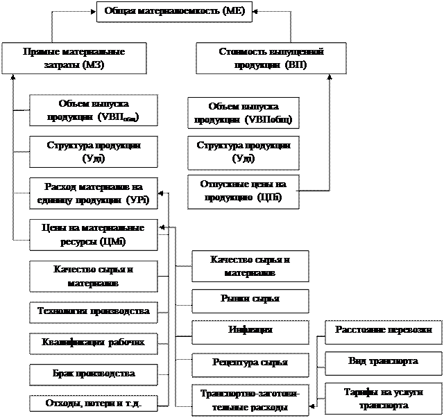 Рис 8.1. Структурно логическая схема факторного анализа материалоемкости
