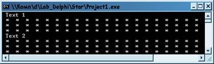 Рассмотрим 2 варианта решения одной и той же задачи: вывод текстовых блоков с вставкой стандартного разделителя из трех строк из набора символов “ * ” в конце.