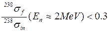 · возникновение при одном делении более двух нейтронов (n = 2,5) со средней энергией 2 МэВ