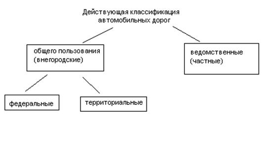 в соответствии с постановлением РФ от 21.12.91. №61 «о классификации автомобильных дорог в РФ» внегородские автомобильные дороги делятся на автомобильные дороги общего пользования и вневедомственные дороги.