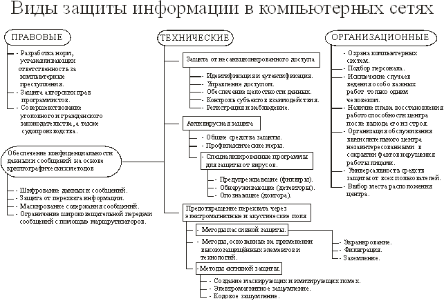- защита от перехвата информации в передающей среде компьютерной сети и ее компонентах;