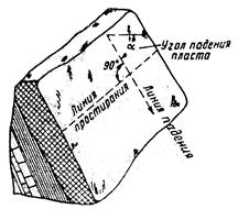 Падение пласта – направление и наклон пласта к горизонтальной поверхности.
