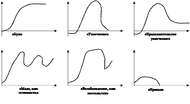 Наряду с классическим ЖЦТ (рис. 2) на практике могут иметь место особые случаи, когда форма кривой ЖЦ недостаточно четко отражает различные стадии внедрения товара на рынок (рис. 3)