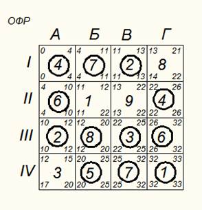 В промежуточных клеточках, к которым подходят 2 связи (ресурсная и фронтальная) в расчет принимаем максимальное значение.