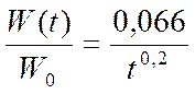 Зависимость отношения мощности, выделяемой всеми продуктами радиоактивного распада W(t) к полной мощности реактора W0, который долгое время работал на этой мощности, может быть представлена формулой для оценок W(t) в интервале 1-105 с