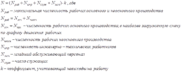 -рабочие неосновного производства (занятые обслуживанием самой площадки-электрики и т.д.) как правило, 20-40% от численности рабочих основного производства