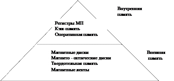 Компромисс между удельной стоимостью хранения, емкостью и быстродействием в ЭВМ достигается специальной иерархической организацией потоков информации, которая обеспечивает снижение интенсивности обращений к запоминающим устройствам со стороны процессора по мере перехода от устройств верхних уровней иерархии к устройствам нижних уровней.