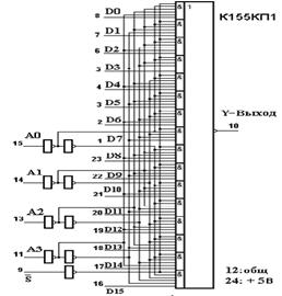 Рисунок 3.2- УГО и функциональная схема мультиплексора 16-входового К155 КП1
