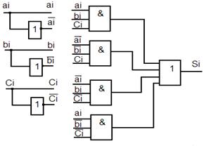 Рис. 4.4 Схема полного сумматора на элементах НЕ, И, ИЛИ
