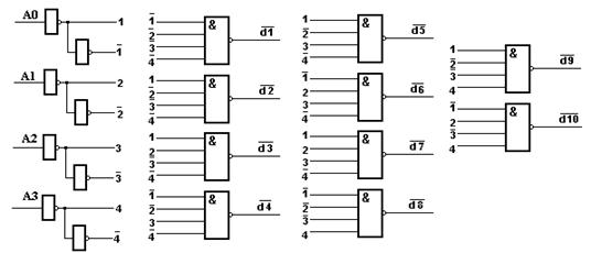 Функциональная схема линейного двоично-десятичного (неполного дешифратора) дешифратора