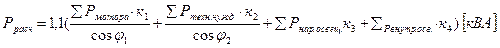 к1…к4-коэффициенты спроса, учитывающие одновременность работы потребителей электроэнергии