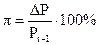 Главным показателем инфляции выступает темп (или уровень) инфляции (rate of inflation - р), который рассчитывается как процентное отношение разницы уровней цен текущего и предыдущего года к уровню цен предыдущего года: