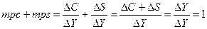 Сумма предельной склонности к потреблению и предельной склонности к сбережению равна 1: