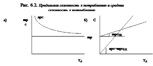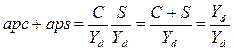 - растет. Долю потребления в доходе (т.е. отношение величины потребления к величине дохода) Кейнс назвал средней склонностью к потреблению (average propensity to consume – apc), а долю сбережений в доходе (т.е. отношение величины сбережений к величине дохода) – средней склонностью к сбережению (average propensity to save – aps):