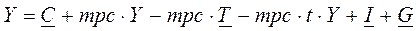 Кроме аккордных налогов в экономике существуют подоходные (т.е. зависящие от уровня дохода) налоги. С их учетом потребительская функция будет иметь вид: C = C + mpc(Y – T – tY), где t - предельная налоговая ставка, которая показывает, на сколько увеличатся (уменьшатся) налоговые поступления при росте совокупного дохода на единицу, т.е.