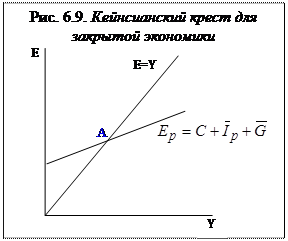 «Кейнсианский крест» для закрытой экономики (для трехсекторной модели экономики) изображен на рис. 6.9.