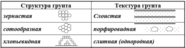 Следует различать структуру грунта, т. е. взаимное расположение частиц грунта и характер связи между ними, и текстуру грунта, т. е. сложение грунта в массиве.